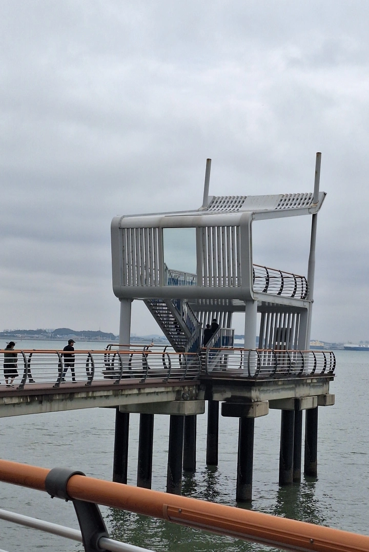 전망대 너머로 노을이 반사되는 바닷길을 따라 쭉 걷다 보면 작은 공원까지 산책 코스는 이어져 있어요. 바닷바람이 조금 차가우니 가을철엔 얇은 외투 꼭 챙기세요.
