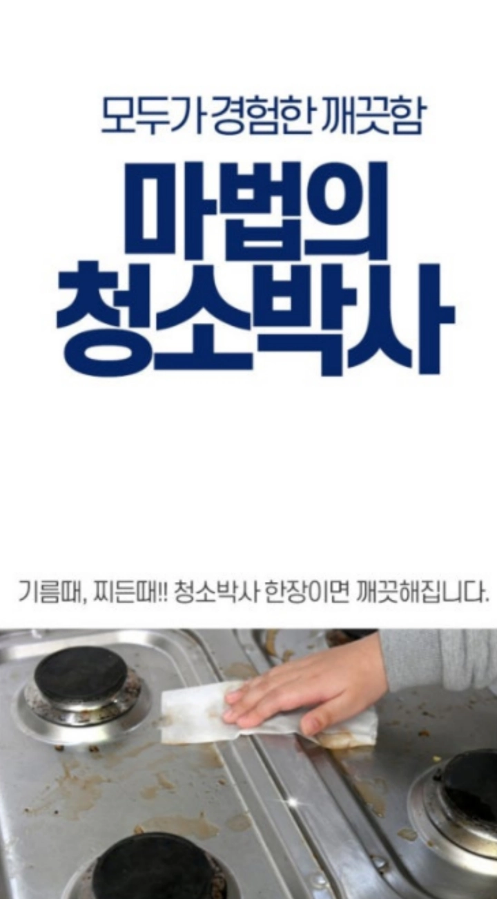 마법의 청소박사는 이름 그대로 ‘마법처럼 찌든 때를 없애주는 청소형 와이퍼 티슈’ 예요. 강력한 세정력다용도 사용이 가장 큰 특징인데, 특히 화안법에 의해 엄격하게 관리되는 제품이어서 믿고 쓸 수 있는 제품이에요.